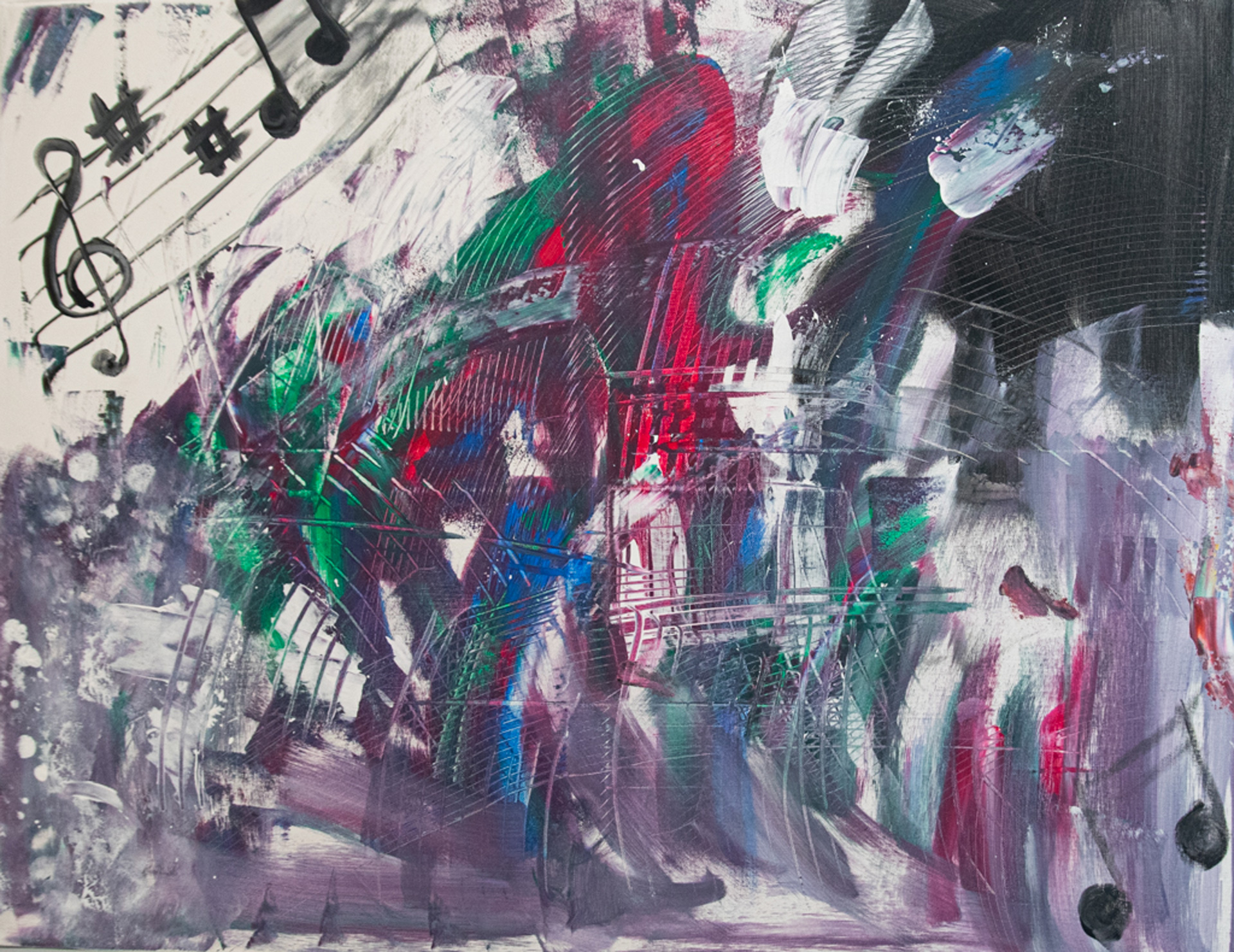 The Composition ist für mich der Versuch, Klang sichtbar zu machen – nicht als Noten, sondern als Gefühl. Linien kreuzen sich, Farben antworten einander, Formen treten hervor und ziehen sich zurück – wie Instrumente in einem Ensemble.