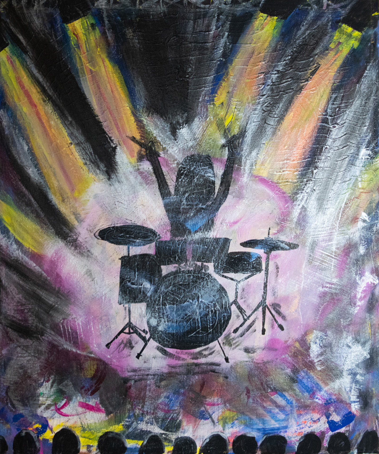 Das Bild ist lebendig, farbenfroh und voller Bewegung – wie ein visueller Mitschnitt eines Konzerts, bei dem man sich ganz verliert. Die Formen tanzen, die Farben leuchten, und mittendrin: dieses Gefühl von Freiheit, Nähe und Leichtigkeit.