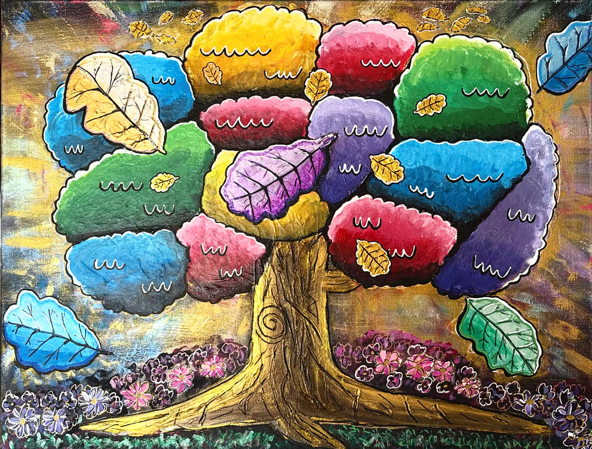 In meinem Bild verschmelzen kräftige Farben und organische Formen zu einer Szene, die die Kraft und Würde dieses Baumes einfängt. Es ist ein Ort der Ruhe und des Nachdenkens, der die Geschichte ehrt und gleichzeitig in die Zukunft weist.
